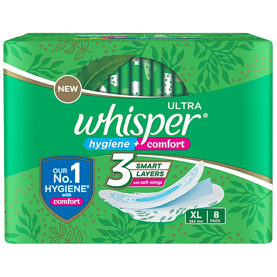 Whisper Sanitary Pads – Extra Large Wings, Ultra – 8 Pads